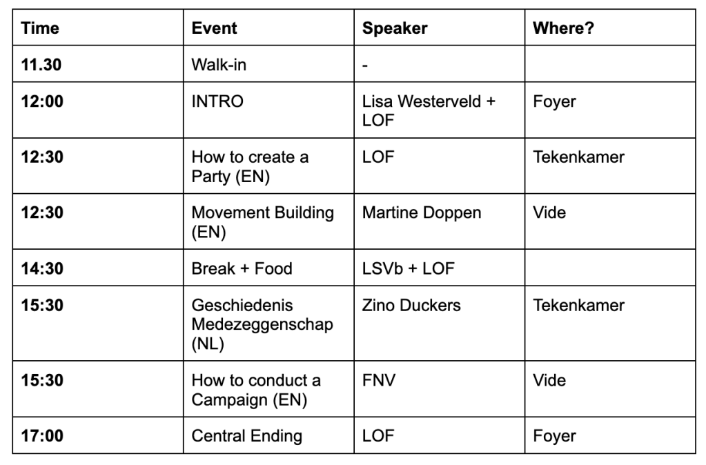 During the session, we will have a diverse program featuring training sessions, discussions, and opportunities to connect with other students from the entire country! This will mostly focus on how to strengthen and democratize the university further. Our speakers include Politician Lisa Westerveld, FNV Board members and LSVb board members!
